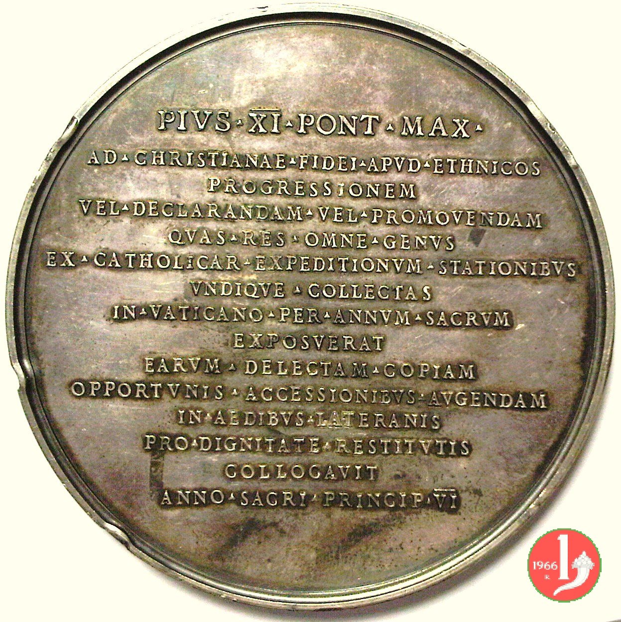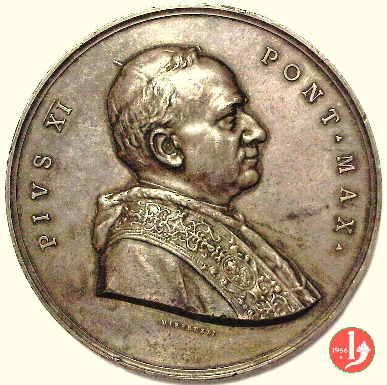Museo Missionario Etnologico Lat. -CM150 Obverse: PIVS XI _ PONT • MAX • busto a dx con berretto, mozzetta d'ermellino e stola sotto: MISTRVZZI | |