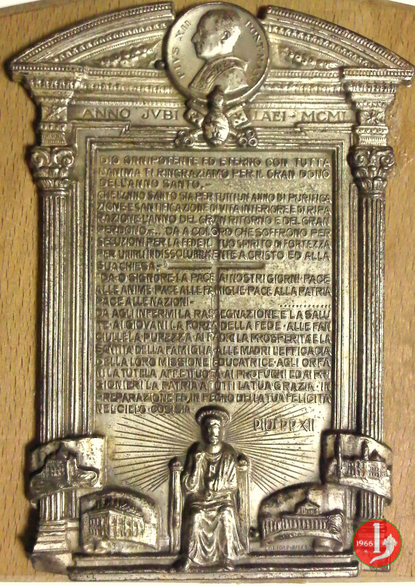 anno XII -> Placchetta Anno Santo 77x58mm 1950