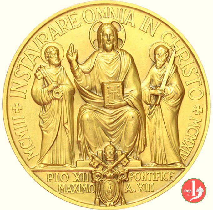in esergo stemma di Pio XII coronato da triregno e chiavi, ai lati: PIO XII _ PONTIFICE = MAXIMO _ A.XIII