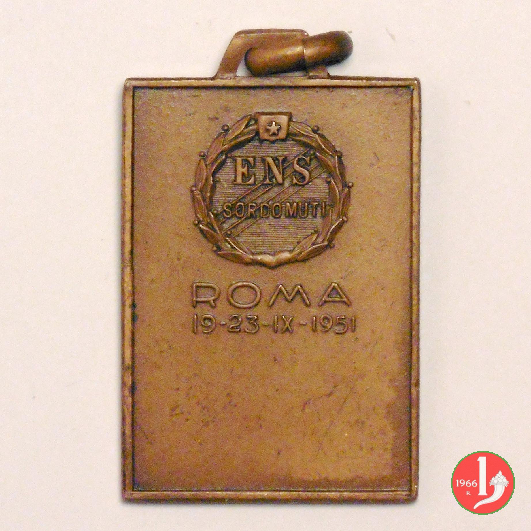 Verso: Emblema dell'Ente Nazionale Sordomuti ENS; sotto: = ROMA = 19-23-IX-1951 = (incuso) A = S.S. PIO XII