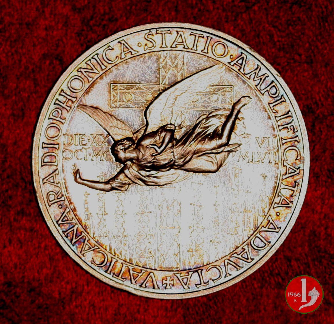 A. XX-Radio Santa Maria di Galeria-CM266 Dritto: PIVS • XII • PONTIFEX • MAXIMVS • ANNO • XX busto a dx con berretto, mozzetta e stola Sotto: MISTRVZZI Angelo in volo verso sx davanti alle antenne della Radio Vaticana ai lati: | |