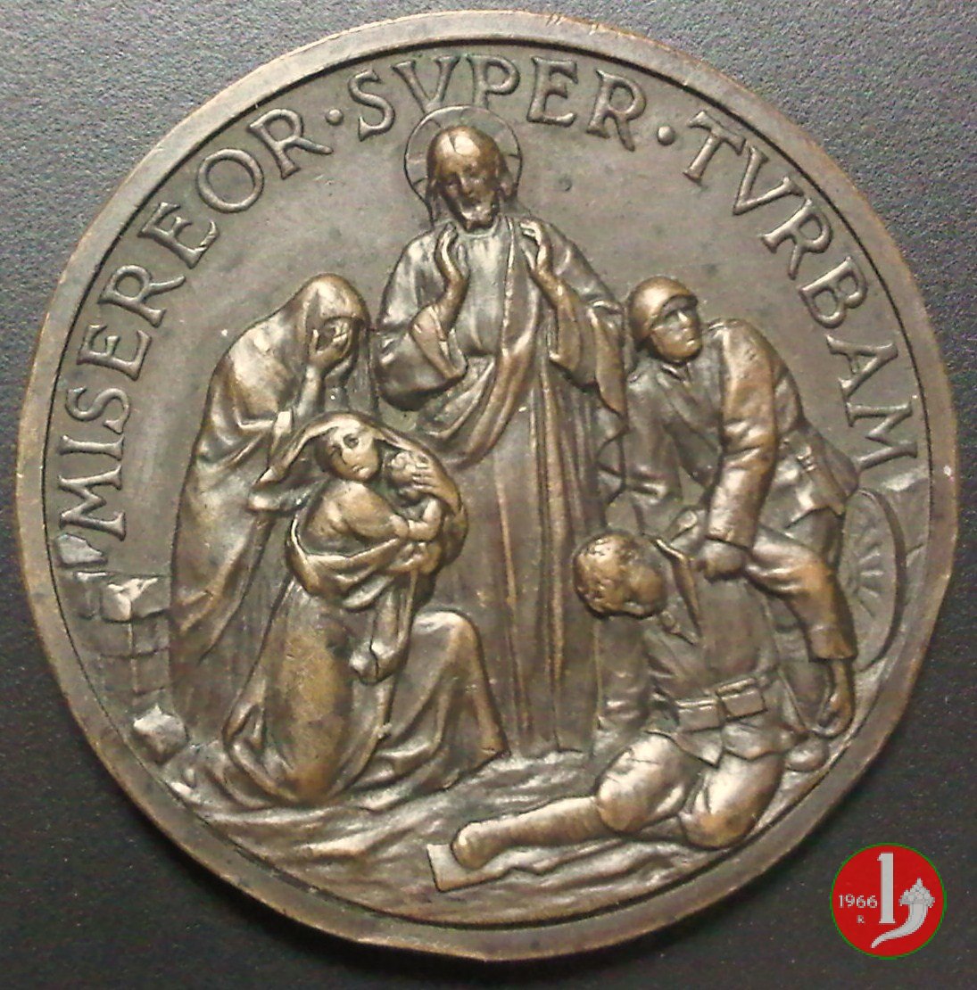 A. III -Gesú Misericordioso -CM22 Dritto: PIVS • XII • PONTIFEX • MAXIMVS • A • III busto a sx con berretto, mozzetta e stola sul taglio spalla: MISTRVZZI Gesú nimbato in piedi di fronte tra donne e soldati feriti | |
