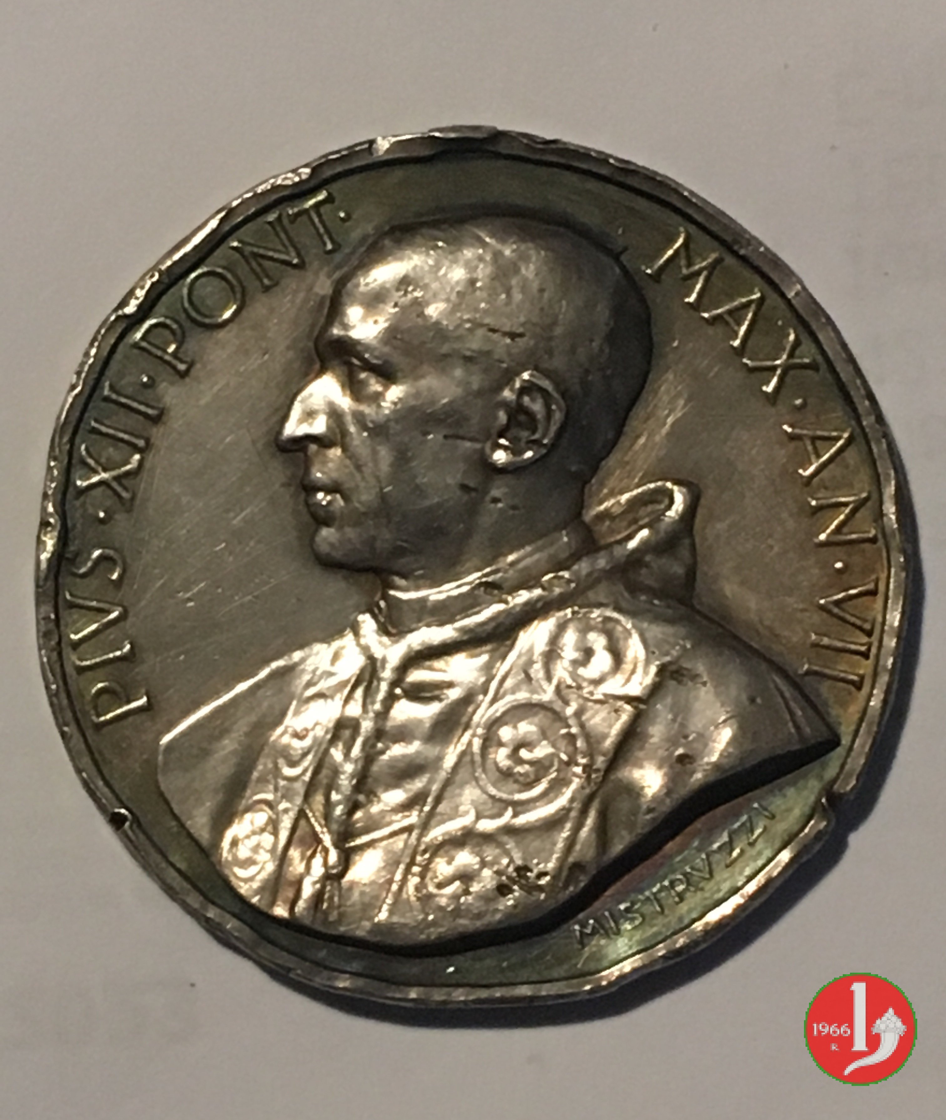 A. VII - Benemerenti -CM- Dritto: PIVS • XII • PONT • _ MAX • AN • VII busto a sx con berretto, mozzetta d'ermellino e stola sotto: MISTRVZZI |