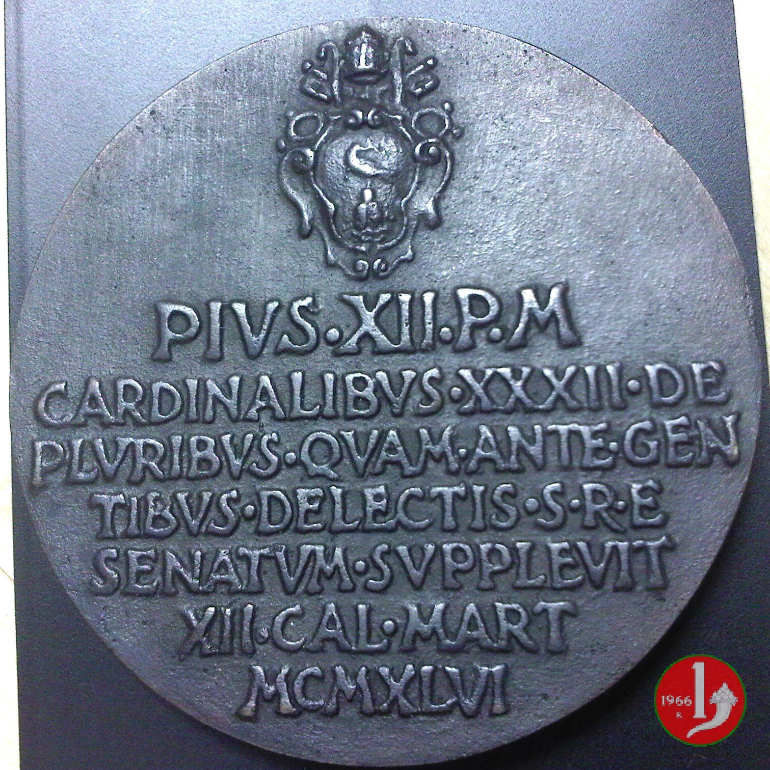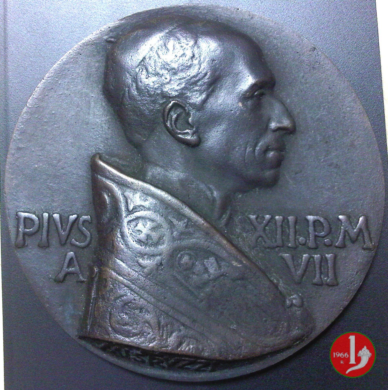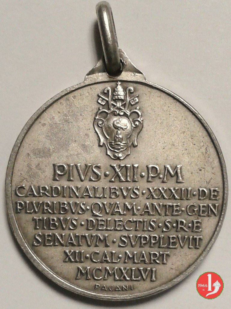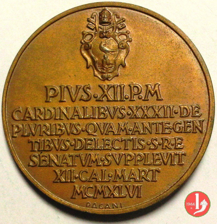 Concistoro del 1946 GM -CM53 Dritto: busto a dx con berretto e piviale nel campo: PIVS _ XII • P • M = A _ VII sul taglio spalla: MISTRVZZI | |