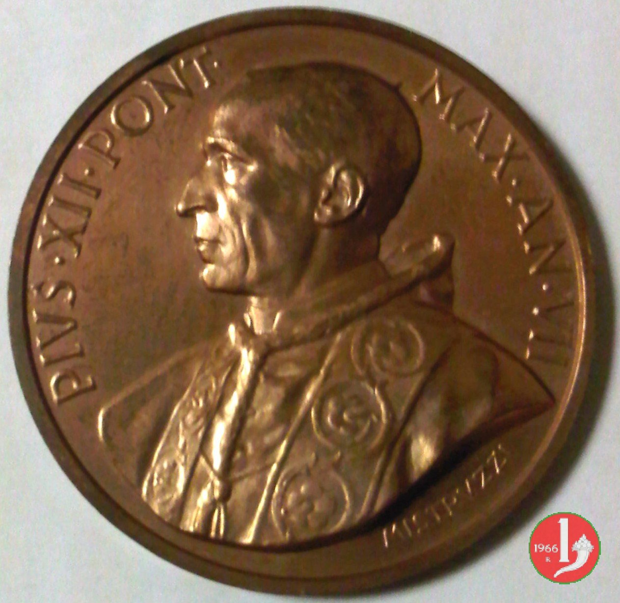 Concistoro del 1946 25mm -CM55 Dritto: busto a dx con berretto e piviale nel campo: PIVS _ XII • P • M = A _ VII sul taglio spalla: MISTRVZZI | |
