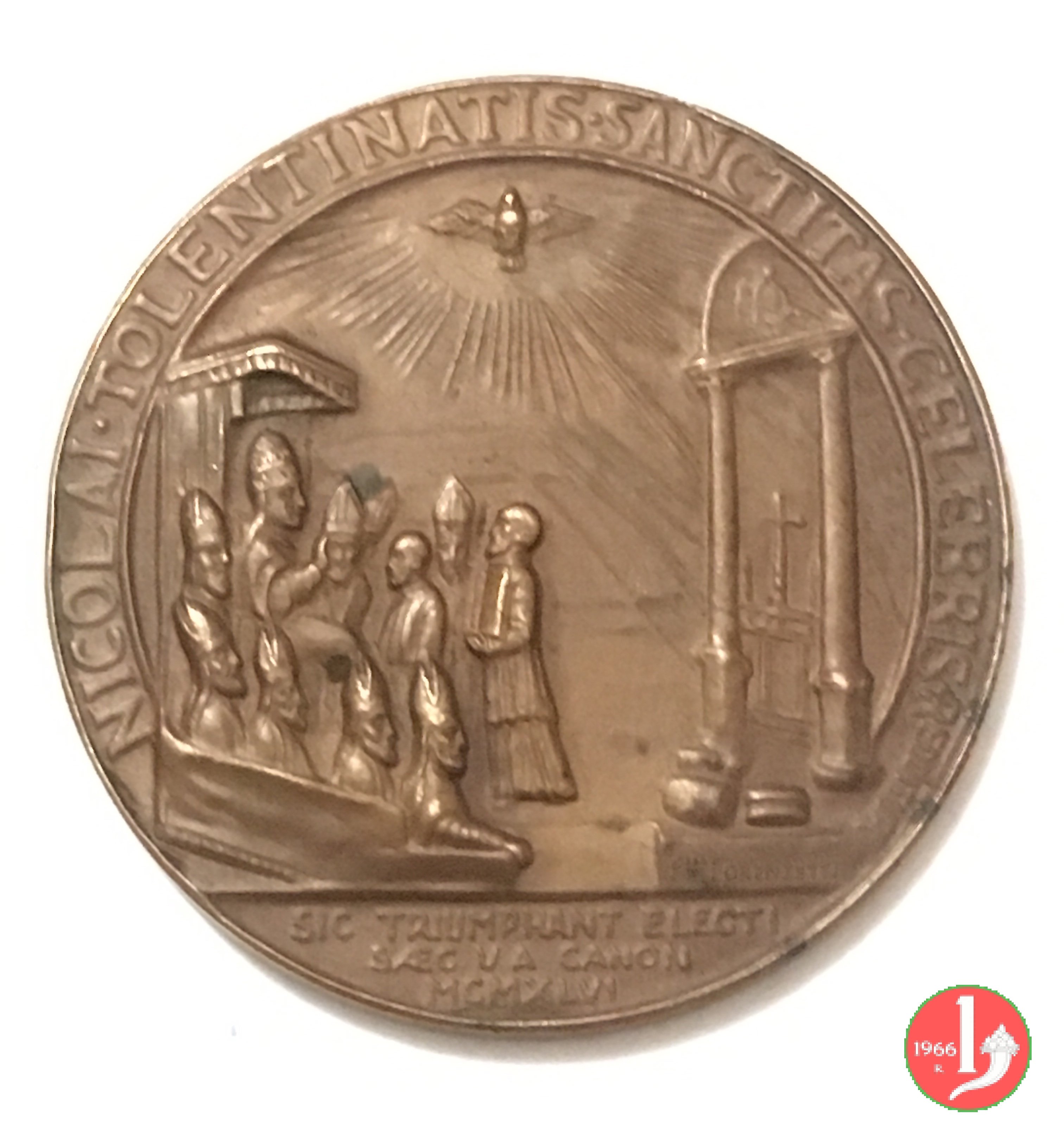 Reverse: V vm S. NICOLAI TOLENTIN A CANONIZATIONE CENTENARI V = MCDLVI _ MCMLVI