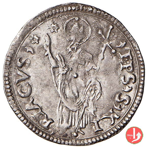 Mezzo grosso (v t.) Dritto: ![]() ![]() ![]() DE ![]() ANCONA ![]() / nel campo grossa croce gigliataVerso: •PP ![]() S![]() Q__VIRIACVS / Il Santo benedicente e con il pastorale nella sinistra | |