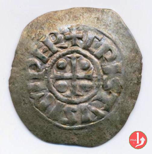 Denaro Dritto: ✠ CRISTVS IMPER' Croce con le estremità trifogliate, accantonata da quattro globuli o bisanti. |