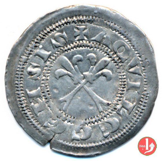 Piccolo con bastoni Dritto: + RAIMVNDV' PA (globetto), due bastoni gigliati e decussati Verso: AQVILEGENSIS |