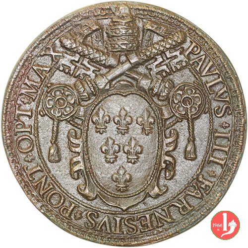 Stemma Papale -Mo372 D Dritto: PAVLVS • III • FARNESIVS • PONT • OPT • MAX (punti a giglio) Stemma Papale sormontato da triregno e chiavi decussate | |