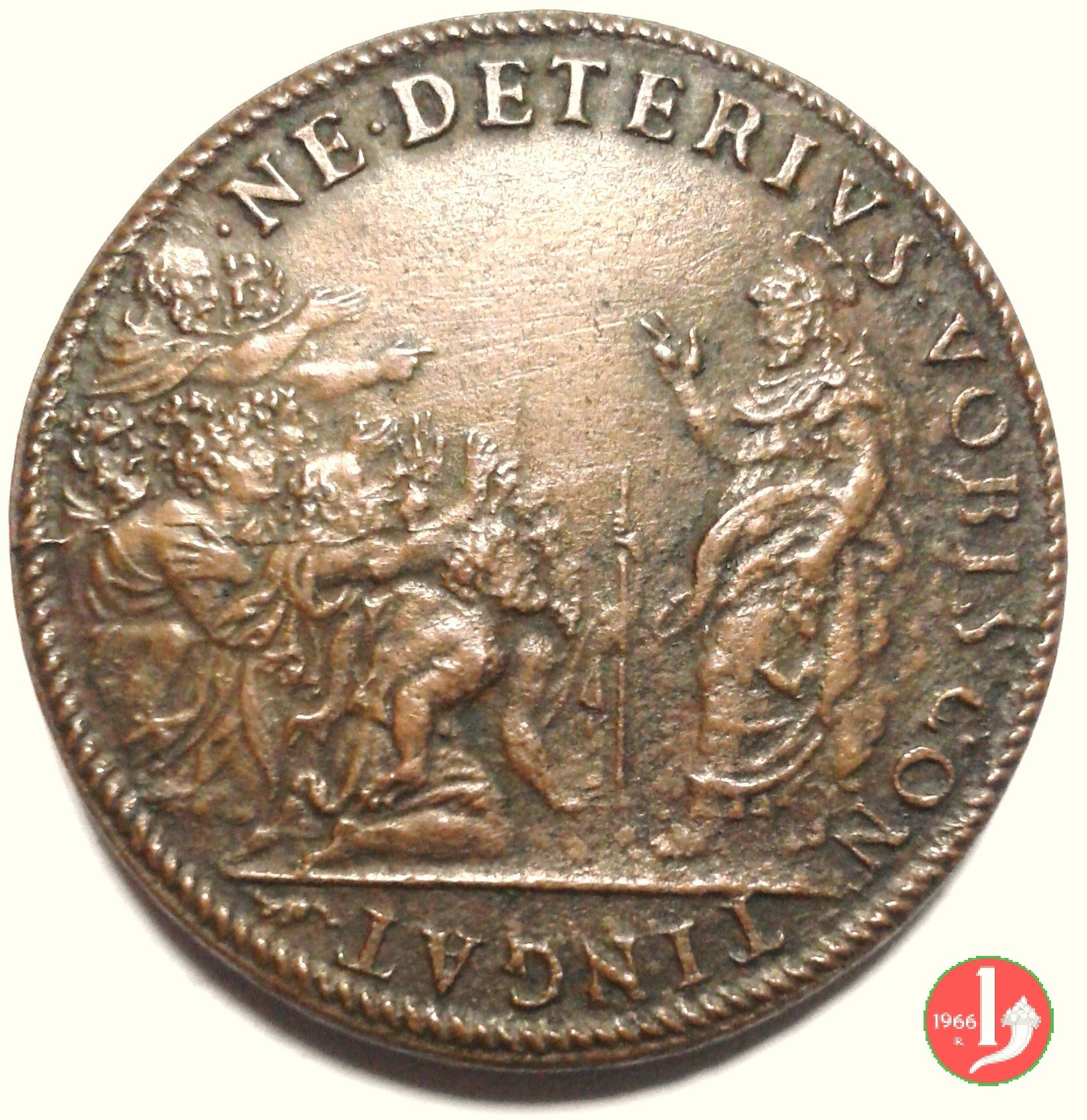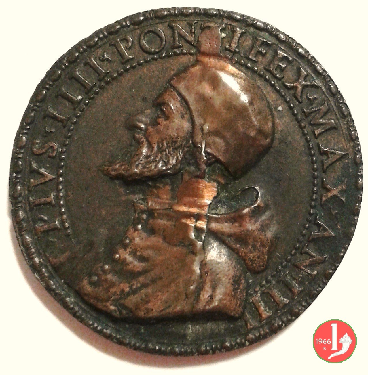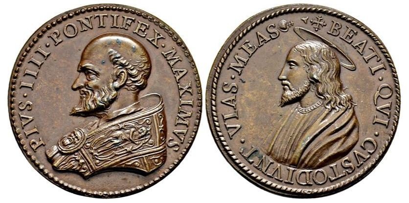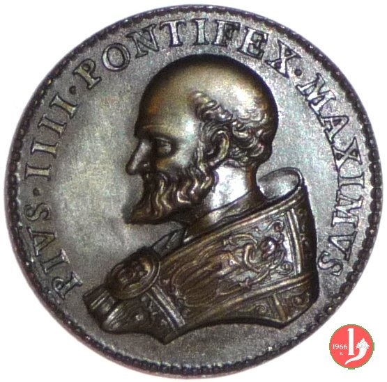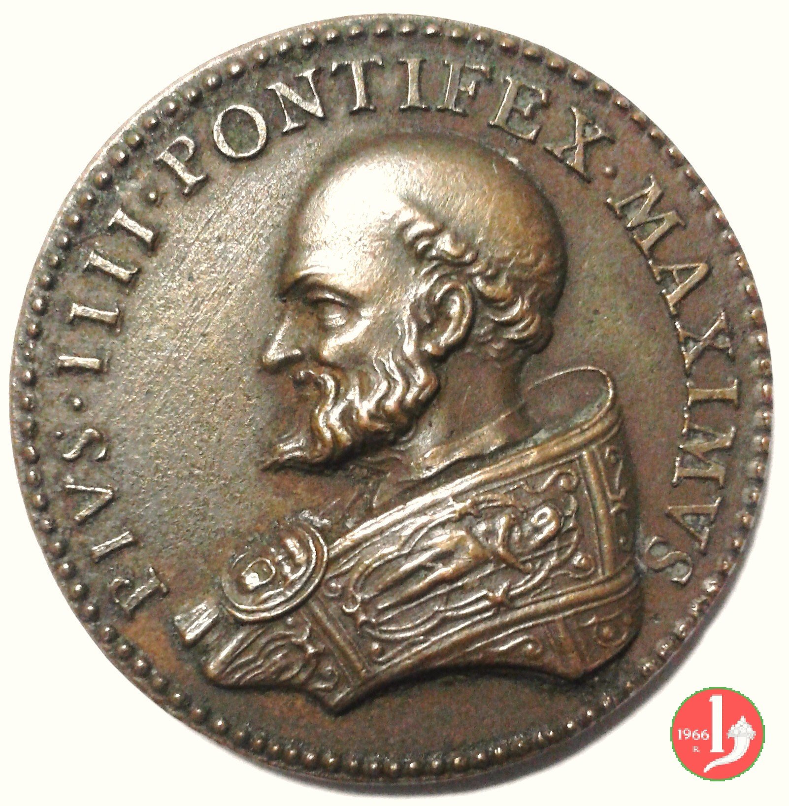 Elezione al Pontificato-Ne deterius vobis -Mo496 Dritto: • PIVS • IIII • PO _ NT • MAX • A • I • Stemma Papale entro cartiglio, sormontato da chiavi decussate e da triregno Gesú nimbato, in piedi, volto a sx, benedice gli infermi | |