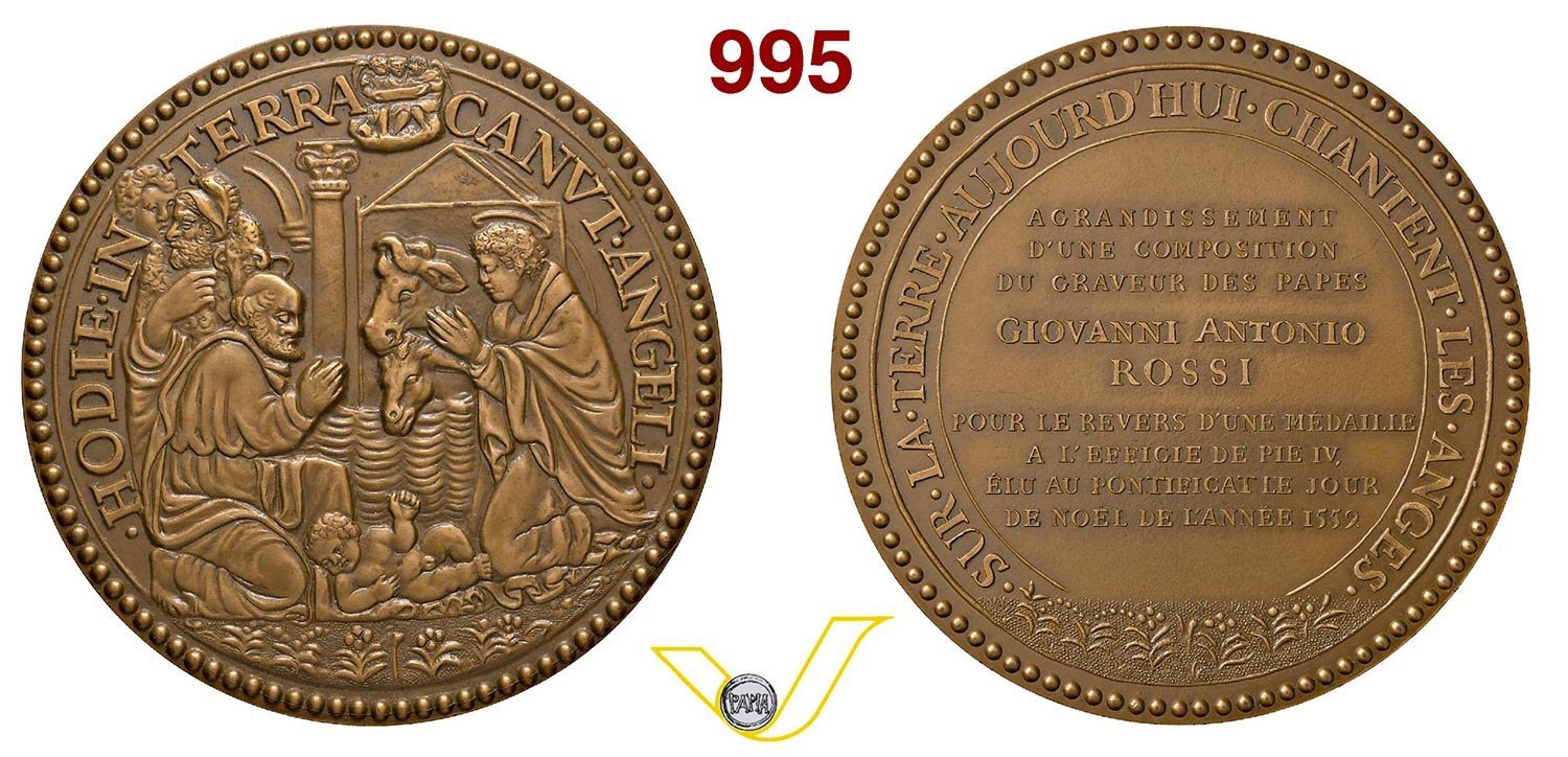 Postuma - 400° Elezione di Pio IV Dritto: _ • HODIE • IN _ TERRA _ CANVT • ANGELI Scena della Natività nel campo | |
