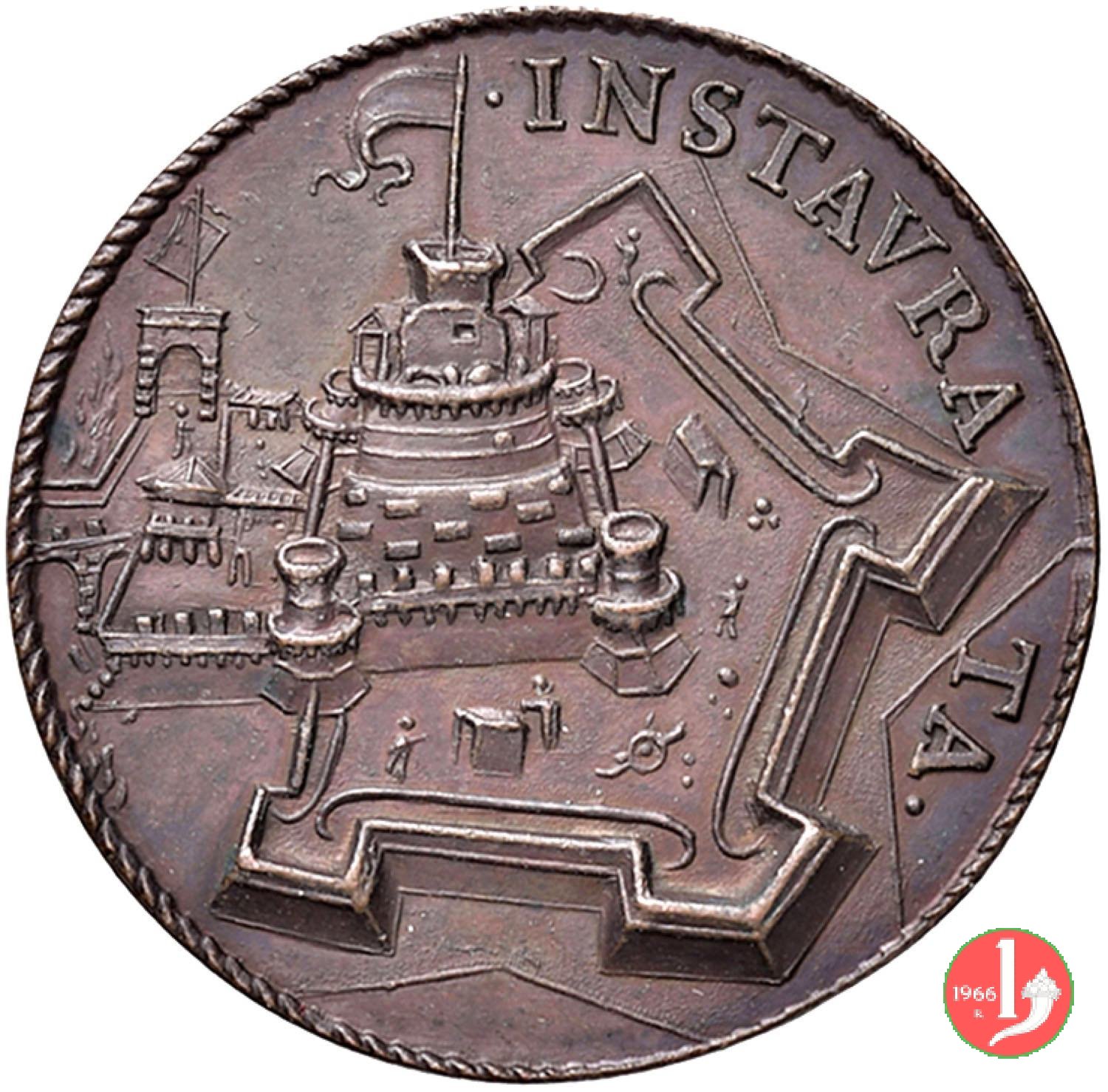 Porto di Civitavecchia -Mo535 Dritto: _ • PIVS • IIII • PONTIFEX • MAX busto a dx con piviale, entro cerchio perlinato vista del Porto di Civitavecchia con le fortificazioni | |