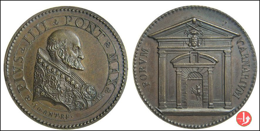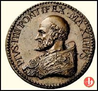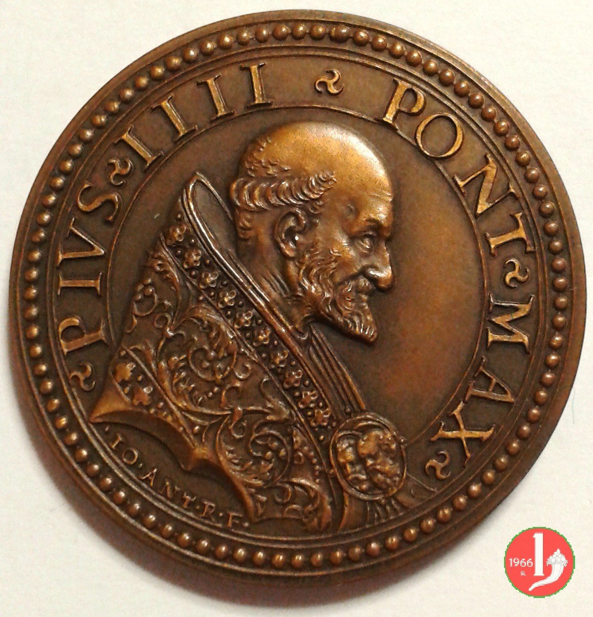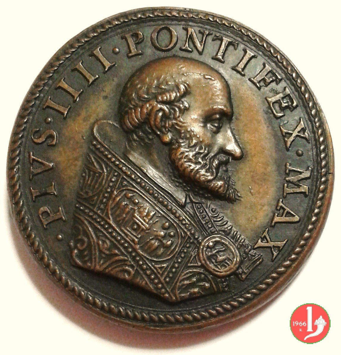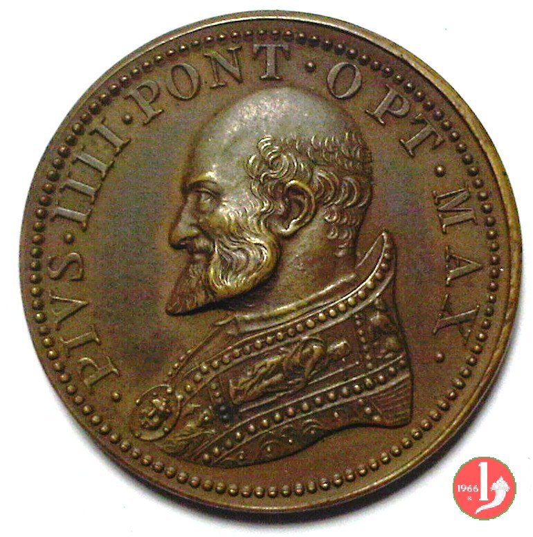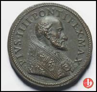 Celebrativa del Pontefice -Mo546 Dritto: PIVS IIII PONT MAX busto a dx con piviale sotto: • IO • ANT • RVB • M • F • | |