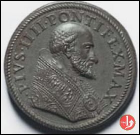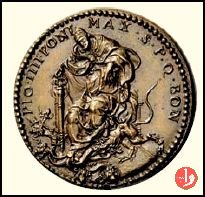 Indulgenza -Mo512 Dritto: • PIVS • IIII • PONT • OPT • MAX • AN • I • busto a sx con piviale Il Papa in trono, benedicente a dx soldati che hanno deposto le armi a terra, sullo sfondo parapetto e Crocefisso | |