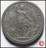 Roma resurgens -Mo494 Dritto: • PIVS • IIII • PO _ NT • MAX • A • I • Stemma Papale entro cartiglio, sormontato da chiavi decussate e da triregno Figura allegorica della città con scudo e asta | |