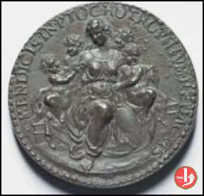 La carità -Mo554 Dritto: • PIVS • IIII • PONTIFEX • MAX busto a dx con piviale decorato con scena dell'udienza papale La figura allegorica della Carità seduta di fronte attorniata da quattro bimbi | |