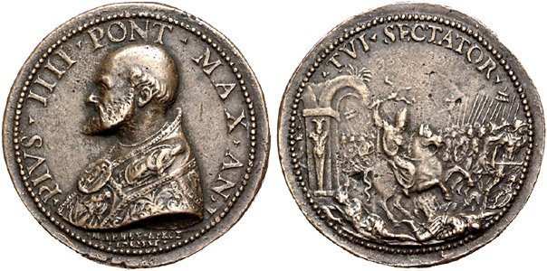 Chiusura Concilio di Tento -Mo560 Dritto: PIVS • IIII • PONTIFEX • MAXIMVS busto a dx con piviale sotto: • F • P • in esergo: TV AVTEM • IDEM = IPSE ES | |