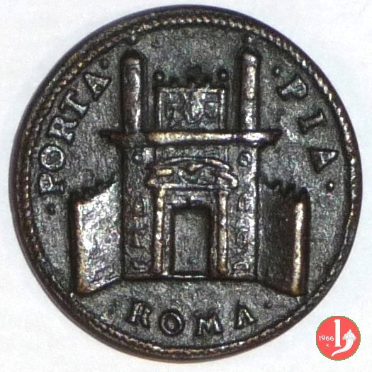 Porta Pia -Mo526 Dritto: • PIVS • IIII • PONTIFEX • MAX busto con piviale a dx prospetto di Porta Pia | |