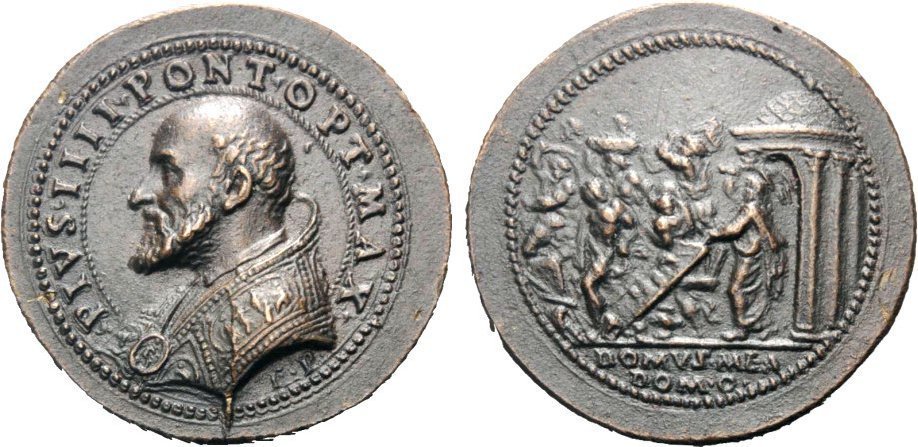 Condanna F.lli Carafa -Mo520 Dritto: _ • PIVS • IIII • PONT • OPT • MAX • busto a sx con piviale sotto: • F • P • in esergo: DOMVS • MEA = DOM • O • | |