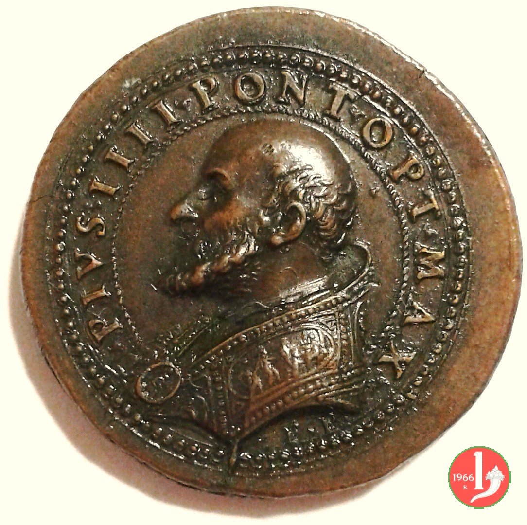 Di restituzione Stemma -Mo571 Dritto: PIO IIII • PONT • = CCXXVIII • busto a sx con camauro e mozzetta ornata | |