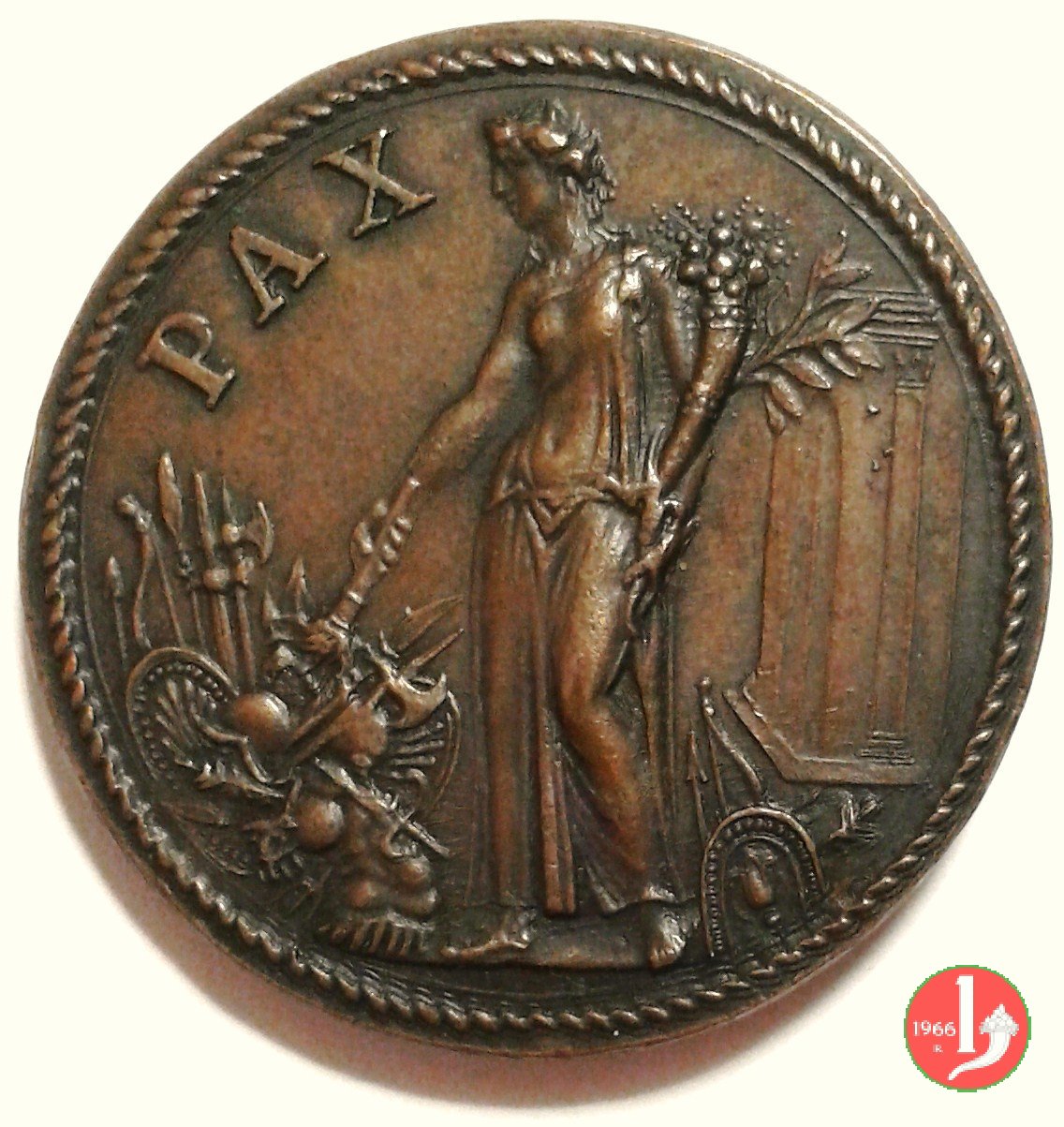 Pace in Francia -Mo549 Dritto: _ • PIVS • IIII PON • MA • O • P • busto a dx con piviale la figura allegorica della pace reca cornucopia e ramo dulivo | |