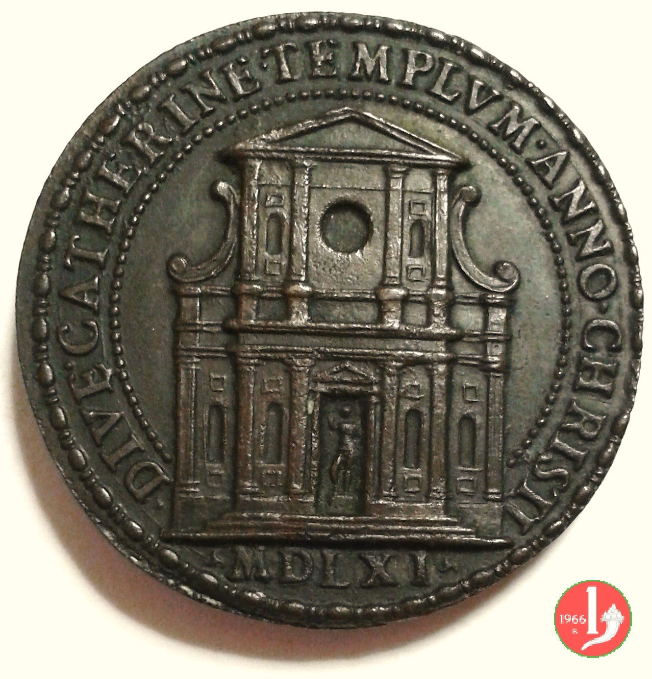Chiesa di Santa Caterina dei Funari -Mo559 Dritto: PIVS • IIII • PONTIFEX • MAXIMVS busto a sx con piviale Prospetto anteriore della chiesa di Santa Caterina dei Funari in esergo: • MDLXI • | |