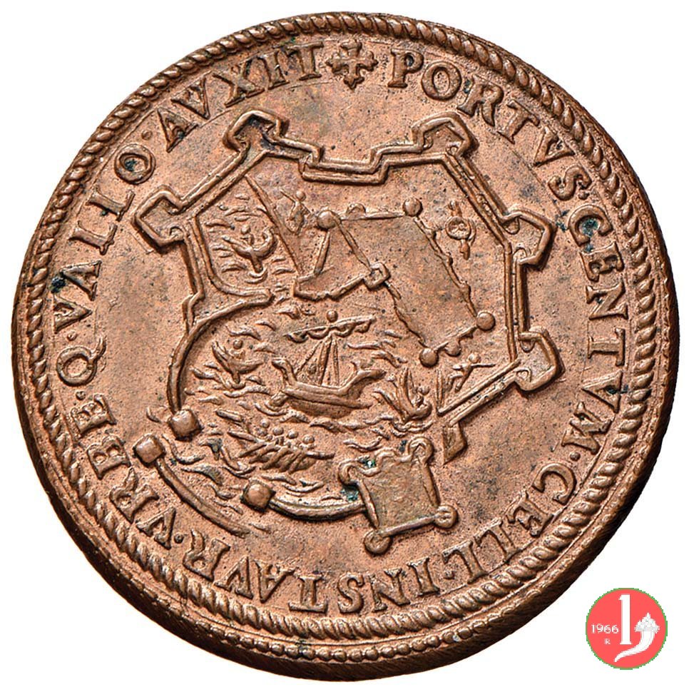 Porto di Civitavecchia -Mo534 Dritto: • PIVS • IIII • PONT • MAX • O • P • busto a dx con piviale, entro cerchio perlinato vista del Porto di Civitavecchia con le fortificazioni | |