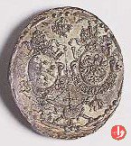 Dritto: Stemmi affiancati di Clemente VIII su chiavi decussate e coronato da triregno e di Rodolfo d' Asburgo Imperatore coronato