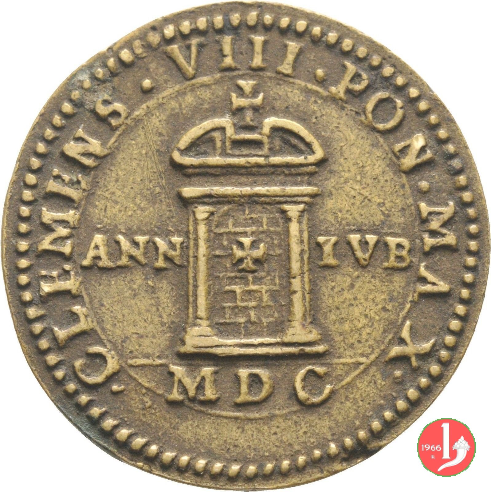 Verso: nel campo: ALPHONSVS = EPVS • OSTIEN • SACRI = COLLEGII • DECANVS = S.R.E. CARD • GESVALDVS = IVSSV • CLEMENTIS • PAPAE = VIII • APERVIT • ET • CLA = VSIT • ANNO • IVBILEI = MDC