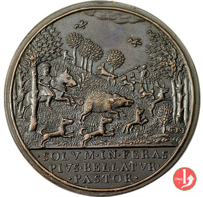 in esergo: • SOLVM • IN • FERAS • = PIVS • BELLATVR • = • PASTOR •