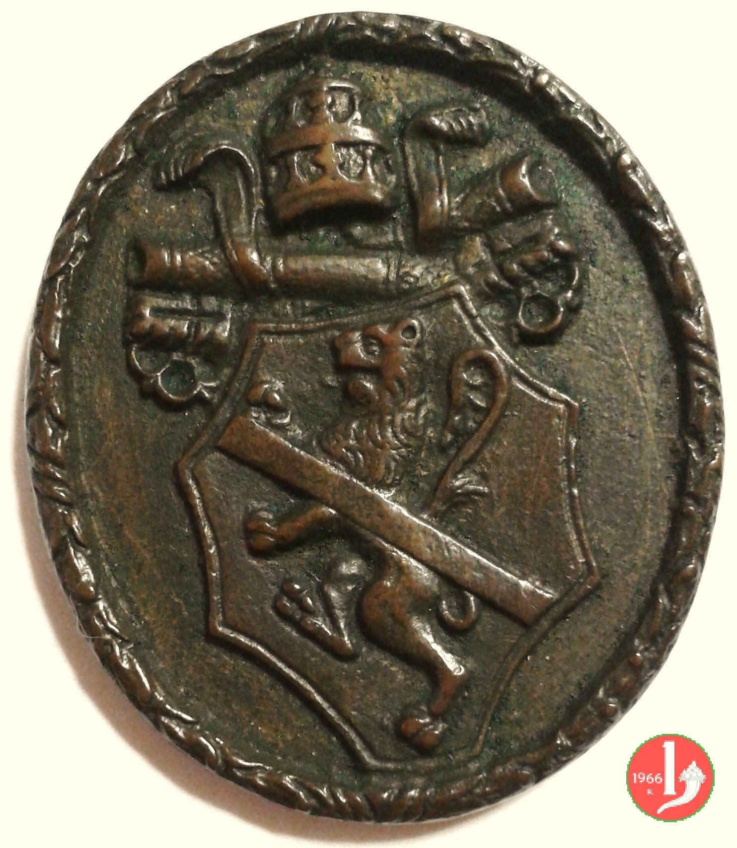 Verso: stemma entro scudetto sormontato da triregno e chiavi