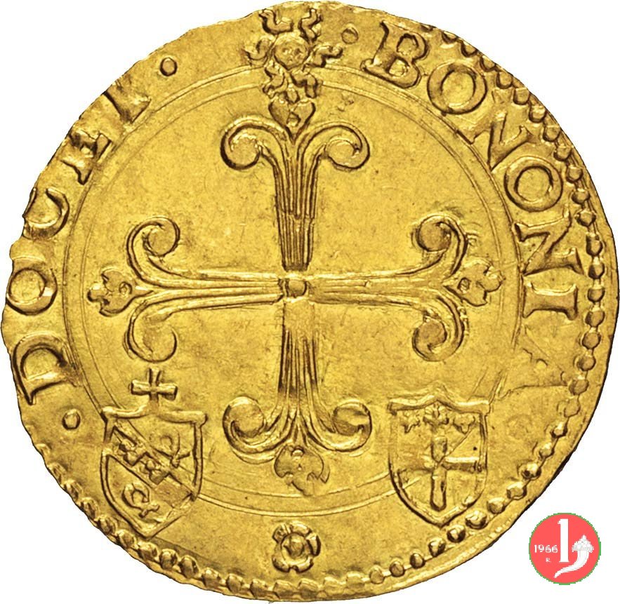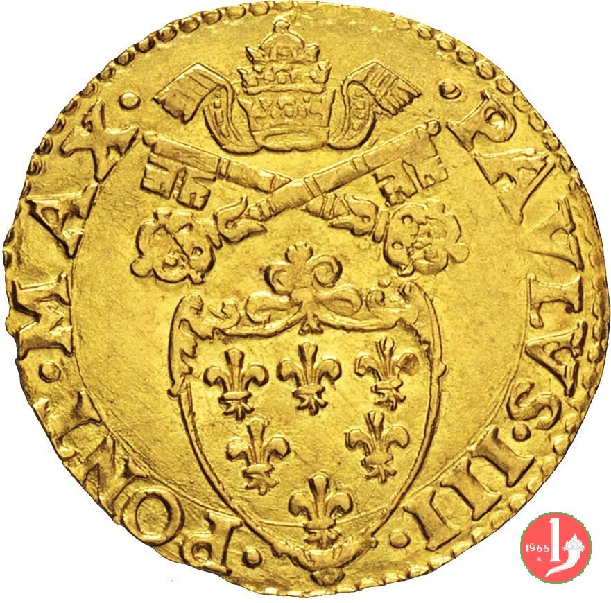 scudo d'oro del sole Dritto: •PAVLVS •III • - •PONT •MAX • nel campo stemma semiovale gigliato sormontato tra triregno e chiavi decussate. Verso: (sole) •BONONIA • (rosetta) •DOCET • nel campo croce gigliata tra stemmi del cardinale legato e di Bologna con croce. |