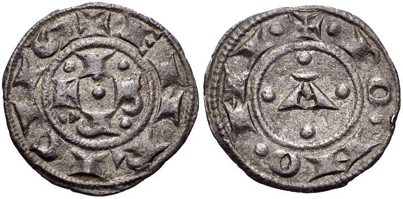 bolognino piccolo Dritto: + ENRICIIS, nel campo I •P •R •T • in croce attorno a globetti Verso: + •BO •NO •NI •, nel campo A gotica tra quattro globetti | |