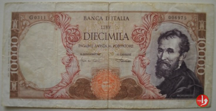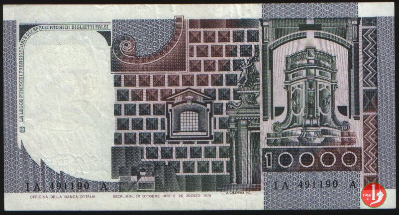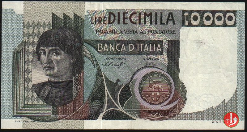 10.000 lire Titolo Provvisorio Dritto: Nei lati due profili di teste dell'Italia, affrontate, con acconciature diverse. Verso: Grande scritta "LIRE 10.000". | |