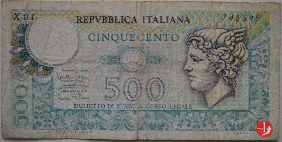 500 lire Testa di Mercurio Dritto: Nella destra Mercurio alato. Verso: Figure allegoriche sulla sinistra. | |