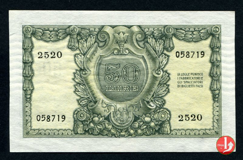 50 lire Italia Elmata Dritto: Allegoria dell'Italia con elmo e corazza a sinistra. Verso: Al centro, indicazione del valore entro cornice elaborata |
