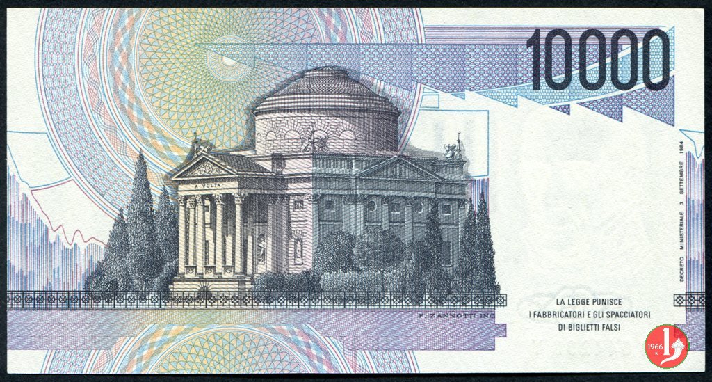 10.000 lire Alessandro Volta Dritto: Busto di Alessandro Volta, opera di Giovita Garavaglia. Conservato presso l'Istituto Nazionale per la Grafica in Roma. Costruito nel 1927 in occasione del centenario della morte dello scienziato. | |