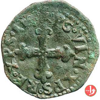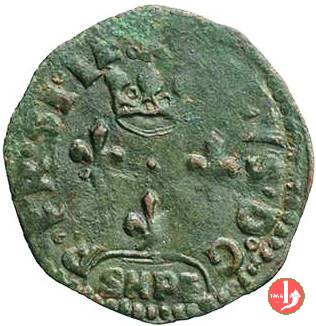 Cavallo (Con croce gigliata e striata) Dritto: : KROLVS ° D ° G ° R ° FR ° SI ° IE ; Tre gigli di Francia sormontati da corona, sotto, in cartella, le lettere SMPE. Verso: : XPS ° VIN ° XPS ° RE ° XPS ° IM, Croce gigliata striata. | |