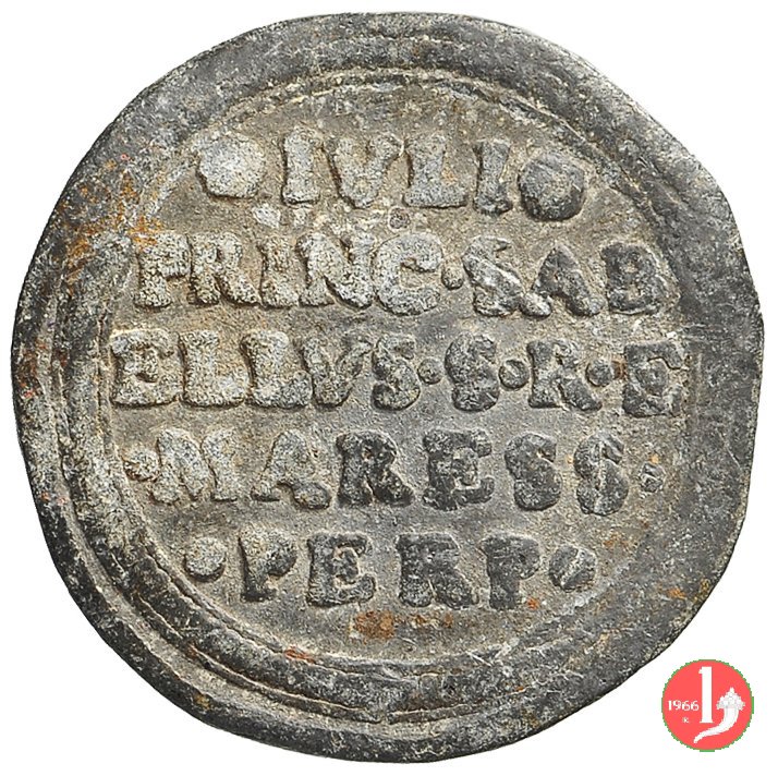 Maresciallo Principe Savelli -Bo10 Dritto: stemma coronato cinto dal collare del Toson d'oro Verso: nel campo: * IVLIO = PRINC • SAB = ELLVS • S • R • E = MARESS • = PERP • |