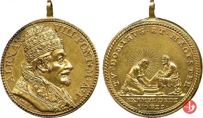 Lavanda dei piedi - A . I -M264a Dritto: ALEXAN • VIII • PONT busto a dx con triregno e piviale in esergo: EXEMPL • DEDI = VOBIS • | |
