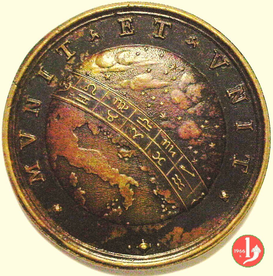 Elezione al pontificato -Mvnit et vnit -M255 Dritto: ALEXAN busto a dx con camauro, mozzetta e stola sotto: • IO • HAMERANVS • F • Il Globo terrestre diviso diagonalmente dalla fascia zodiacale, sopra il cieli e le stelle, sotto l'Italia | |