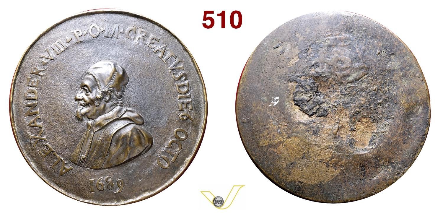 Elezione al pontificato -M252 Dritto: incisa: ALEXANDER • VIII • P • O • M • CREATVS DIE 6 OCTO = 1689 (punti celtici) busto a sx con camauro, mozzetta e stola | |