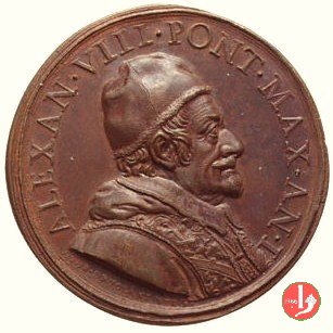 Elezione al pontificato -Mvnit et vnit -M255 Dritto: ALEXAN busto a dx con camauro, mozzetta e stola sotto: • IO • HAMERANVS • F • Il Globo terrestre diviso diagonalmente dalla fascia zodiacale, sopra il cieli e le stelle, sotto l'Italia | |