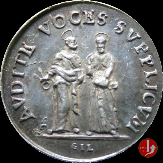 Di devozione ai SS. Pietro e Paolo -M282 Dritto: ALEXANDER • OTTOBONVS busto a dx con camauro, mozzetta e stola I SS. Apostoli nimbati in piedi e di fronte in esergo: GIL | |