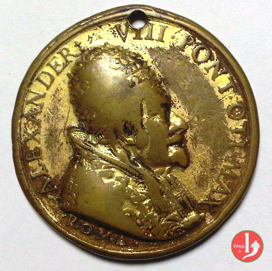 Di devozione a S. Pietro -M281 Dritto: * ALESSAN _ DER VIII busto a dx con triregno e piviale busto di S. Pietro nimbato di 3/4 a sx con chiavi | |