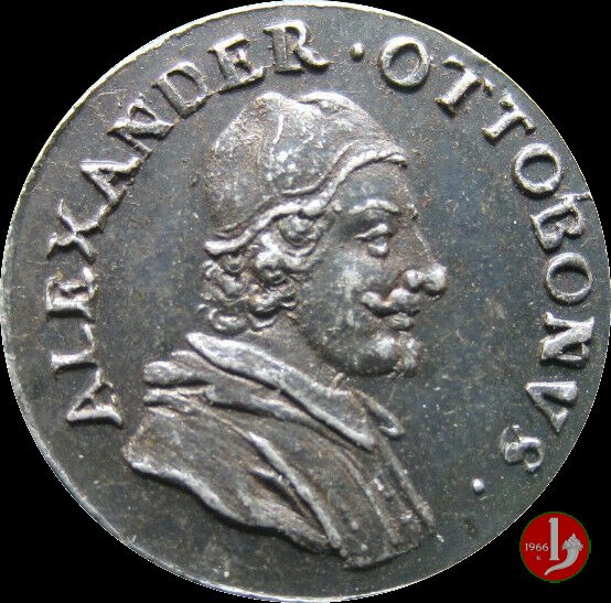 Di devozione a S. Pietro -M281a Dritto: * ALESSANDRO VIII PONT • MAX busto a dx con camauro, mozzetta e stola busto di S. Pietro a sx con chiavi | |
