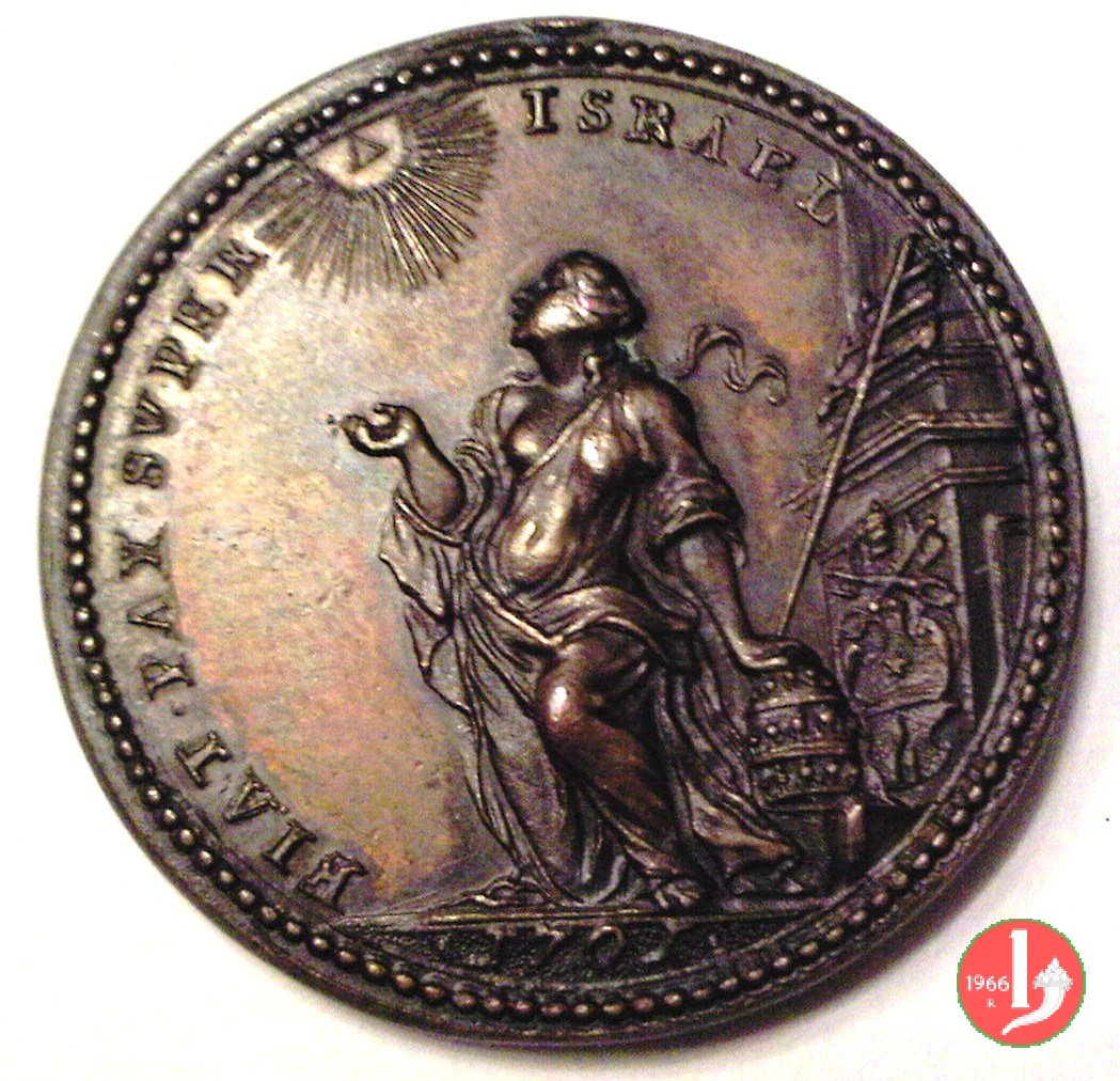 Elezione al pontificato -Colomba -M9 Dritto: CLEM • XI • P • M • _ CREA • XXIII • NOV • MDCC • busto a dx con triregno e piviale sotto: HAMERANVS.F sotto: REPLEVIT = ORBEM = TERRARVM | |