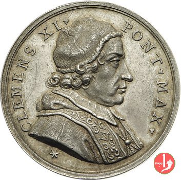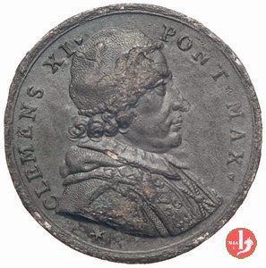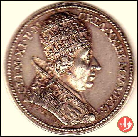 Elezione al pontificato -Chiavi -M10 Dritto: CLEMENS _ XI • PONT • MAX • busto a dx con triregno e piviale Il braccio divino esce dalle nuvole a sx e sorregge le chiavi decussate, sullo sfondo la Basilica di San Pietro in esergo: MDCC | |