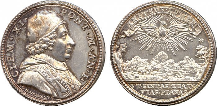 Possesso del Laterano -M21a Dritto: CLEM • XI • _ PONT • M • AN • I • busto a dx con camauro, mozzetta e stola